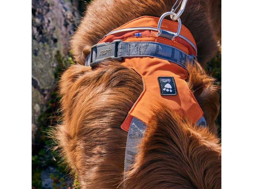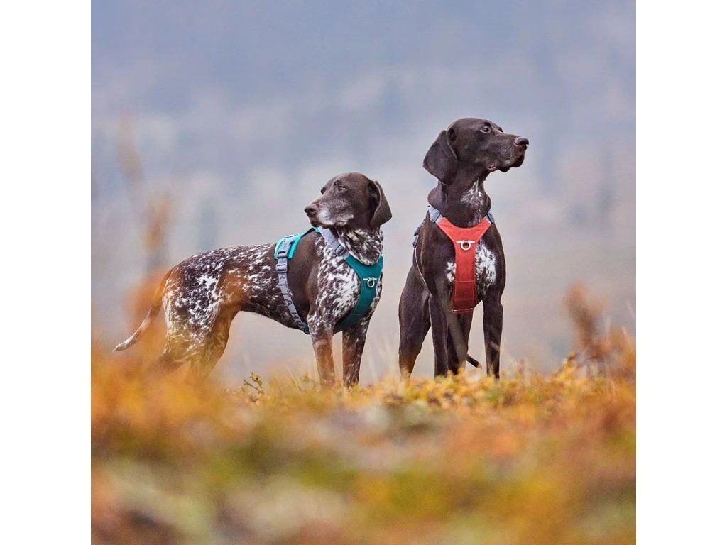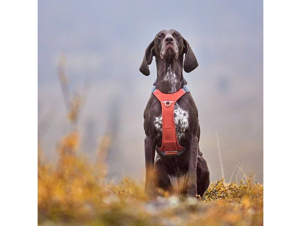 Postroj Rover, určený pro střední a velká plemena, jako jsou border kolie, němečtí krátkosrstí ohaři, irští setři a němečtí ovčáci, je ideální pro turistiku nebo procházku v parku.