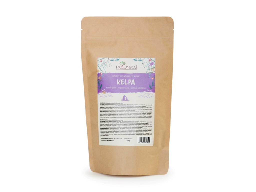 Kelpa je hnědá mořská řasa (chaluha) s vysokým obsahem minerálních látek a jódu. Silná podpora přirozené imunity, antioxidant, podpora trávení a pigmentace kůže i srsti, odstraňuje zubní kámen a pach z tlamy. Je to jedinečný zdroj jódu. Má zeleno-hnědou barvu, jemnou strukturu a výrazné, specifické "mořské" aroma, podobné sušeným mořským plodům. Díky této jemné struktuře má i vysokou využitelnost v organizmu.